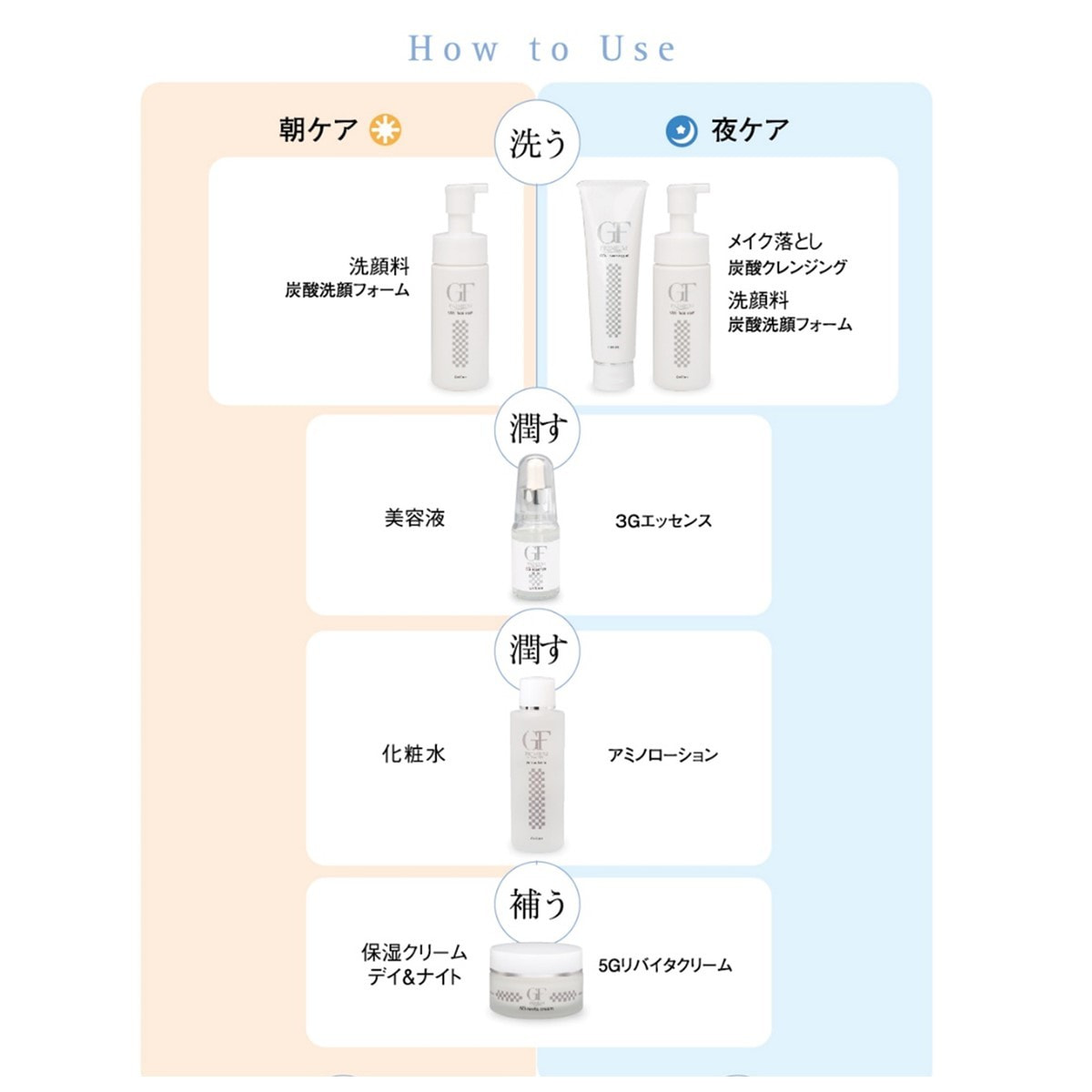 3種類のグロースファクター「EGF/aFGF/IGF-2」が、肌細胞の新生・分裂・再生を促進するのをはじめ、ノーベル賞受賞成分「EGF」を配合。